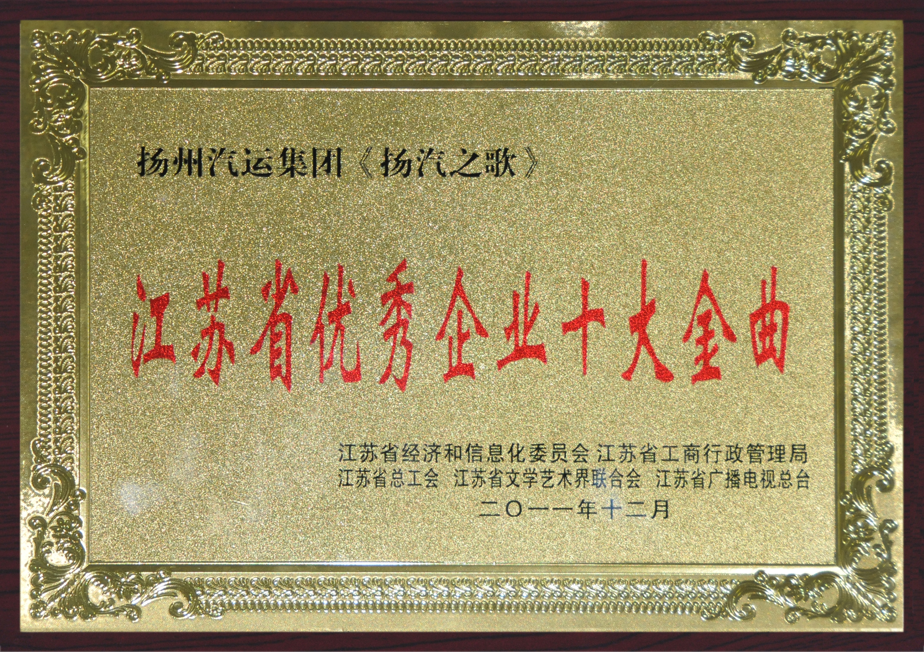 公司喜獲2011年省優秀企業十大金曲