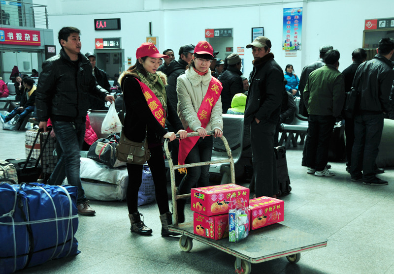 來自揚汽集團和團市委組織的志愿者們有的在進站口向旅客指引車站售票、候車等各個功能區位置;有的在服務臺回答旅客咨詢;有的在安檢處勸導旅客把攜帶的物品放上危險品檢查儀安檢;有的推著“雷鋒車”幫行李較多的旅客拖運箱包;有的給候車的旅客倒上一杯熱水;有的在檢票口幫助維持現場秩序,避免發生擁堵;還有的在候車大廳勸導旅客請勿吸煙……