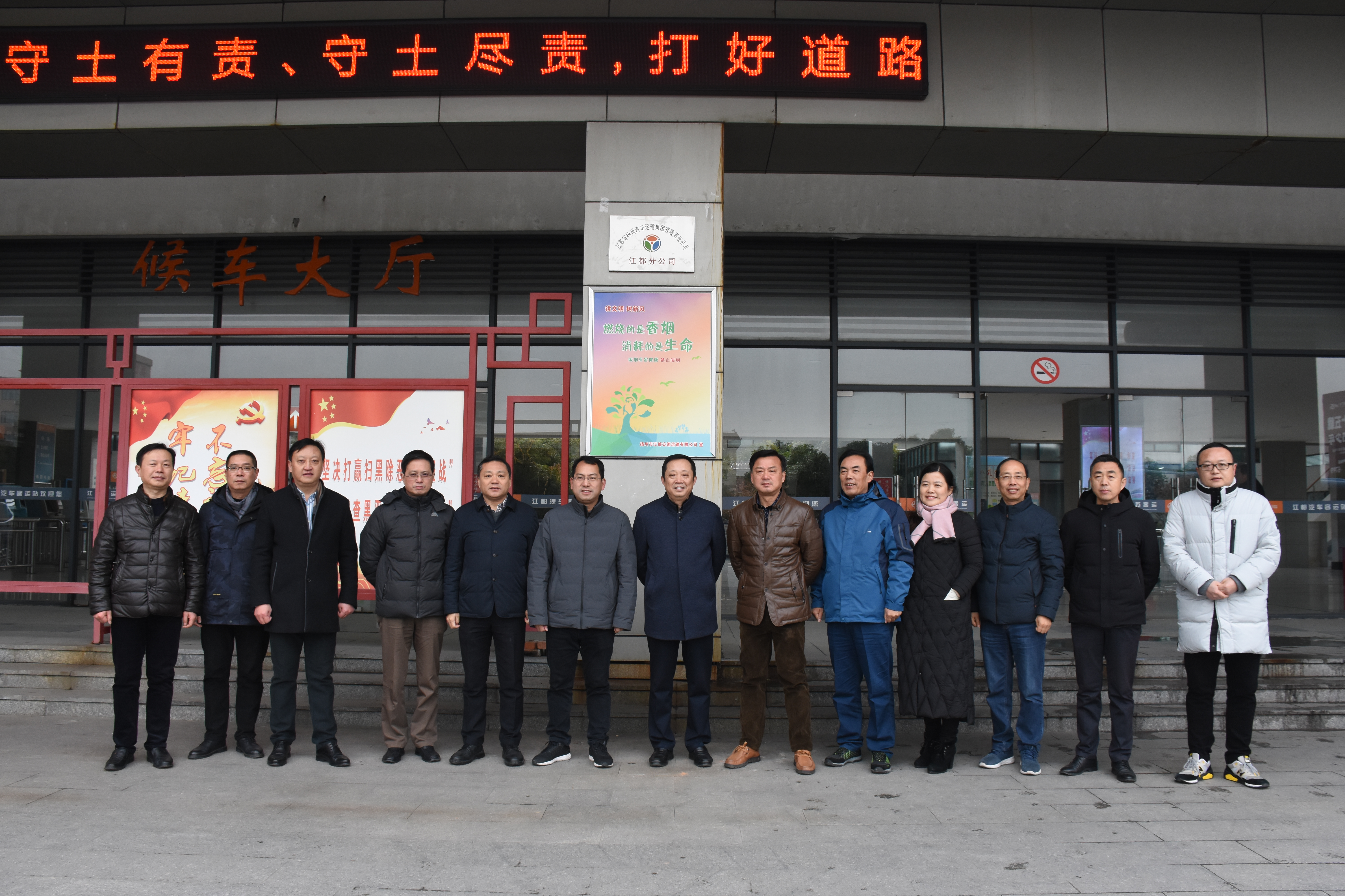 9時18分,隨著掛著江蘇省揚州汽車運輸集團有限責任公司江都分公司的牌子正式揭曉,標志著分公司以嶄新的面貌正式開業運營。隨后,在江都分公司經理劉俊的陪同下,龔宇峰董事長來到候車大廳,對節假日期間車站的運力、配套服務以及安全生產責任落實等情況進行了詳細了解。他強調,安全無小事,分公司要切實落實安全監管責任,統籌抓好各類安全生產和服務工作,在春運即將拉開帷幕之前開個好頭。