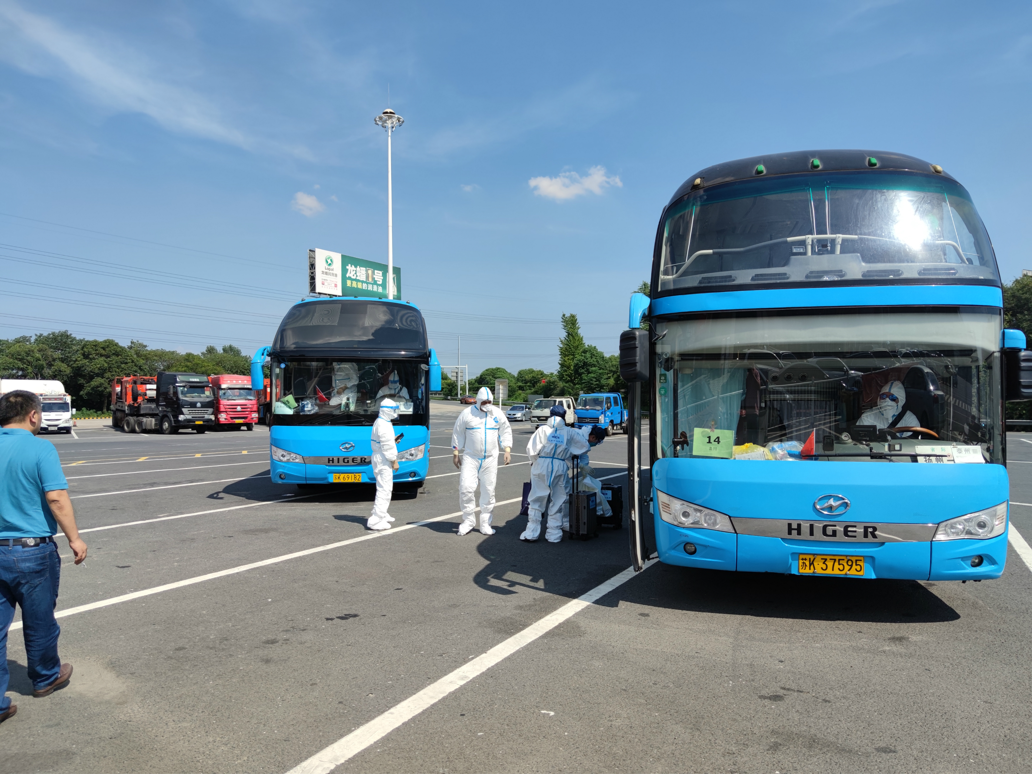當天氣溫達到36度,機坪溫度更是超過50度,在這種酷暑下,駕駛員全身穿戴密閉的防護服,對行車安全是巨大的挑戰(zhàn)。龔宇峰董事長趕赴現(xiàn)場,再次對駕駛員抗高溫,保安全進行了交代。中午11時40分,首批車輛從機場出發(fā),至14時11分最后一批車出發(fā),將二百多名境外返揚人員運送至相關酒店。16時50分,所有車輛圓滿完成任務,回到指定地點,接受消毒和檢測。