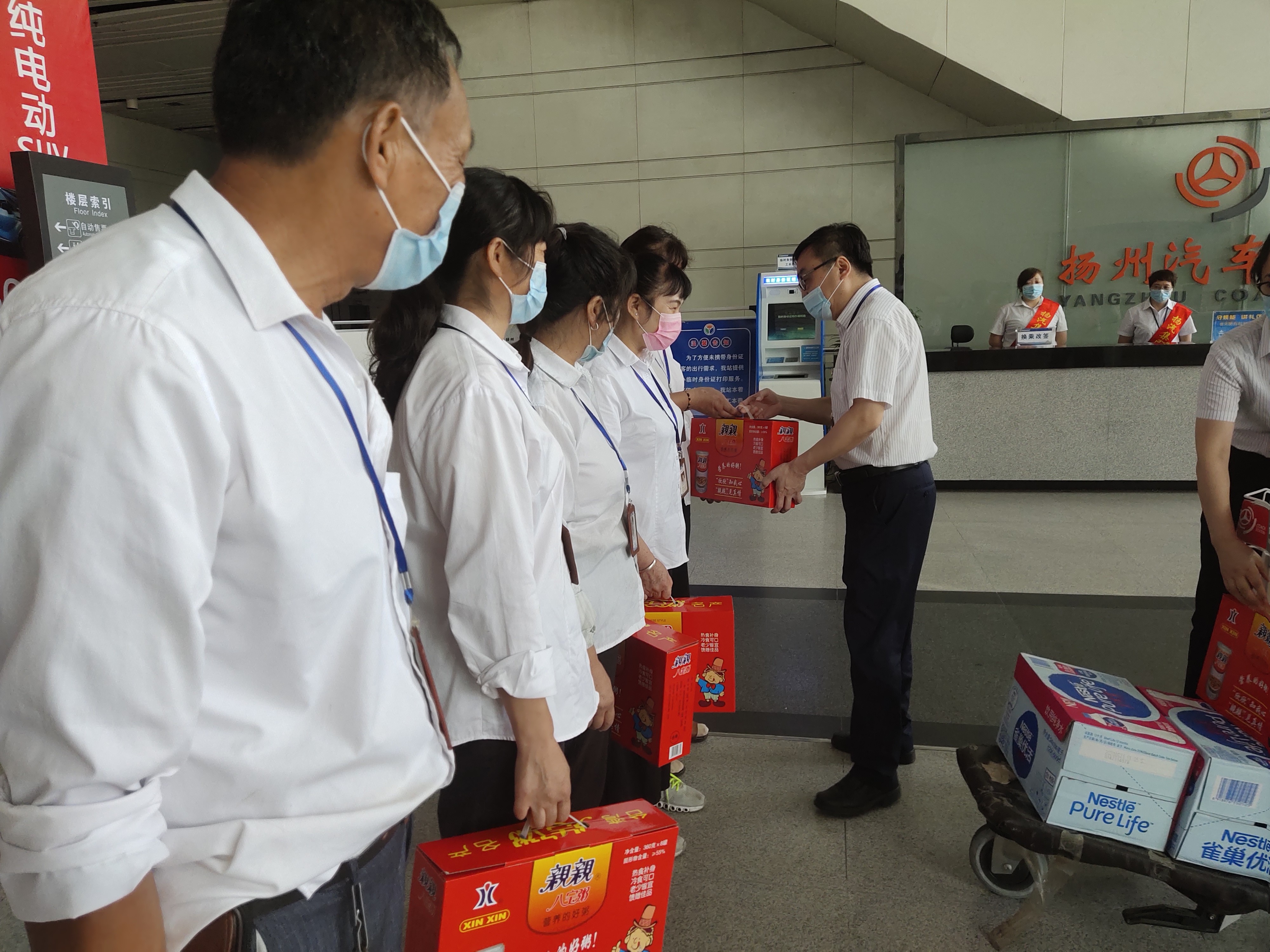揚州站:在疫情防控進入常態化的情況下,揚州站疫情防控工作絲毫沒有松懈,連日的高溫,給揚州站疫情防控工作也帶來了挑戰。為了進一步鼓勵一線職工的斗志,8月18日揚州站組織了送涼爽慰問活動,向高溫天氣中堅守崗位的志愿者、保潔等一線職工送去防暑降溫慰問品,在慰問中叮囑職工注意防暑降溫、勞逸結合,做好安全保障措施,確保勞動安全和身體健康。同時也進一步勉勵他們更好的做好服務工作,為打造平安揚州、幸福揚州、精致揚州做貢獻。