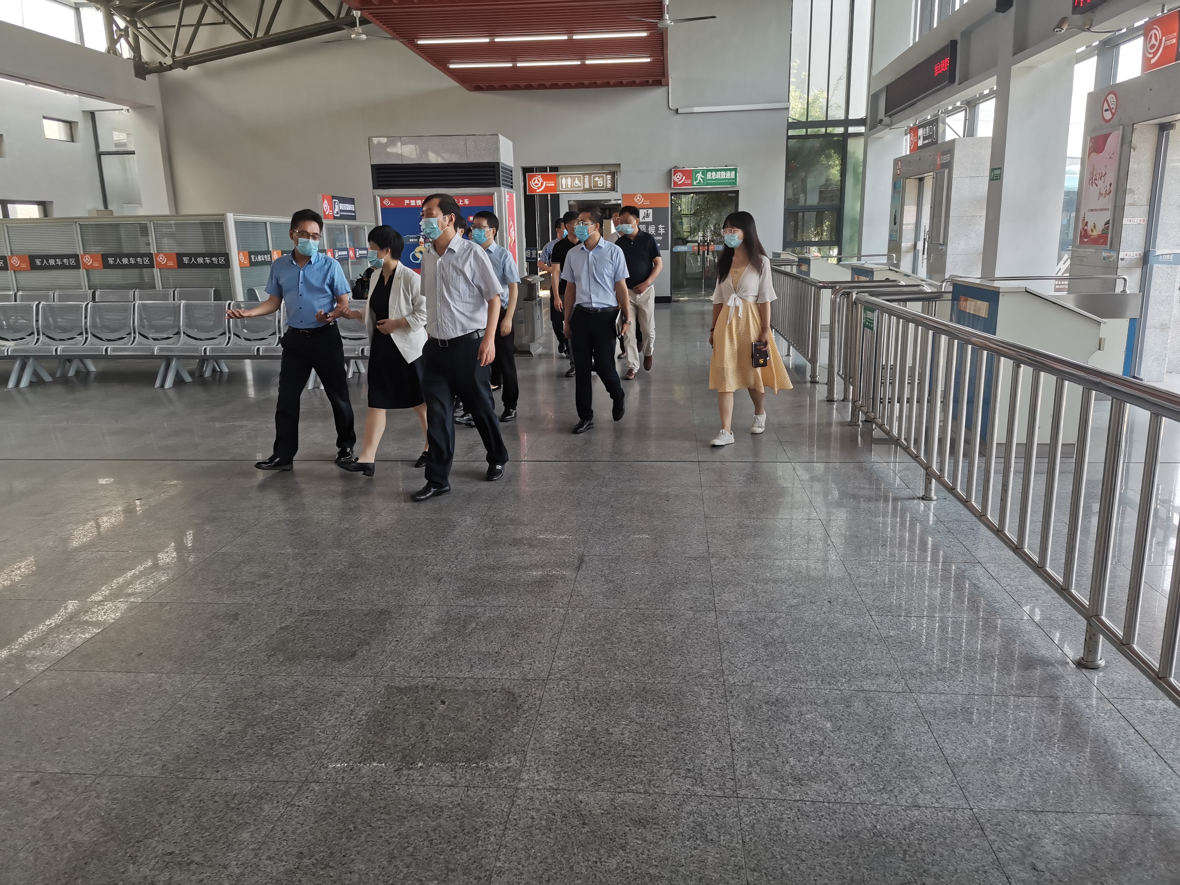 9月7日上午,揚州市江都區委副書記代區長朱莉莉、江都區區委常委宣傳部部長顧明帶隊突擊檢查了揚汽集團江都汽車客運站文明創建工作的落實情況。江都區交通運輸局局長高峰,江都站經理劉俊、副經理張俊等相關負責人陪同檢查。