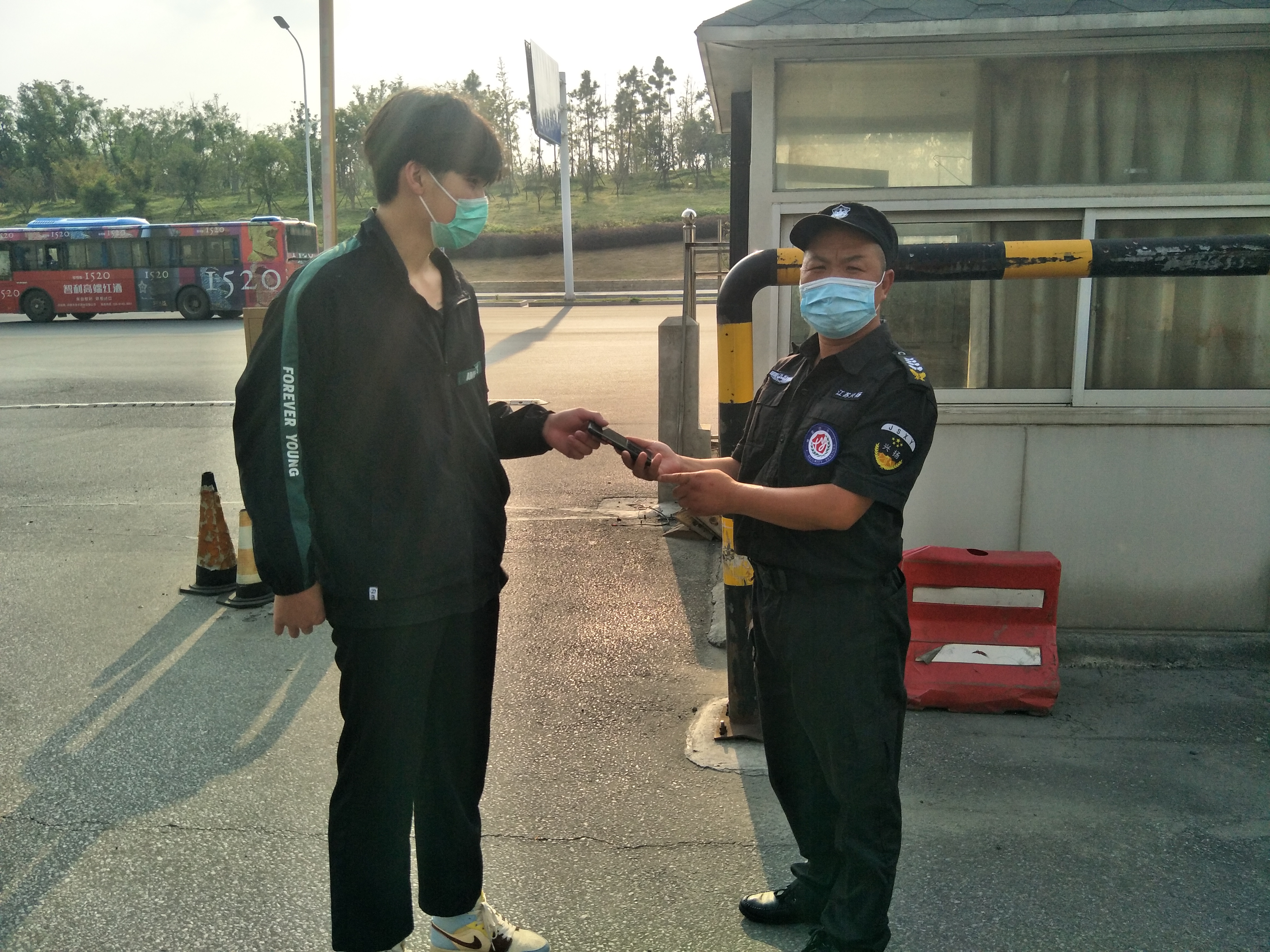 揚州站工作人員陪同小阮先生來到揚州站下客區(qū)管理亭,核實身份信息,在確定無誤后將手機予以交還,小伙子想當面感謝駕駛員師傅,沒想到駕駛員師傅將手機送到管理亭,交由保安師傅后已經離開了,小伙子為了不留遺憾,要求跟我們保安師傅合影,向我們那位拾金不昧做好事不留名的駕駛員師傅表示感謝。