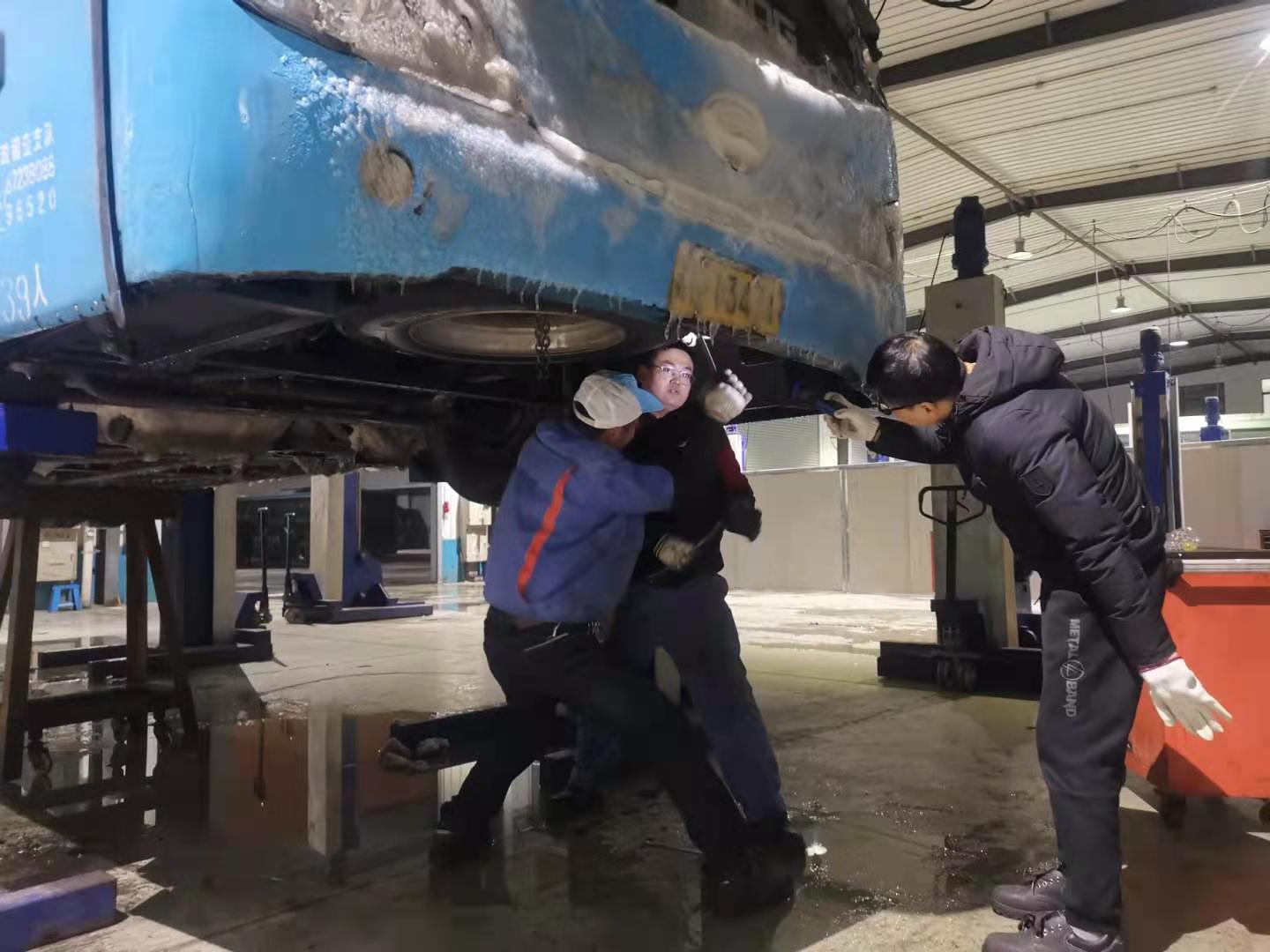 29日深夜修理廠對(duì)車輛進(jìn)行搶修,揚(yáng)汽出租的黨和職工清除場(chǎng)地冰凍積雪,及時(shí)消除安全隱患;在大家的努力下,教培中心科目二考場(chǎng)已無積雪積冰,車輛均已調(diào)試完好。