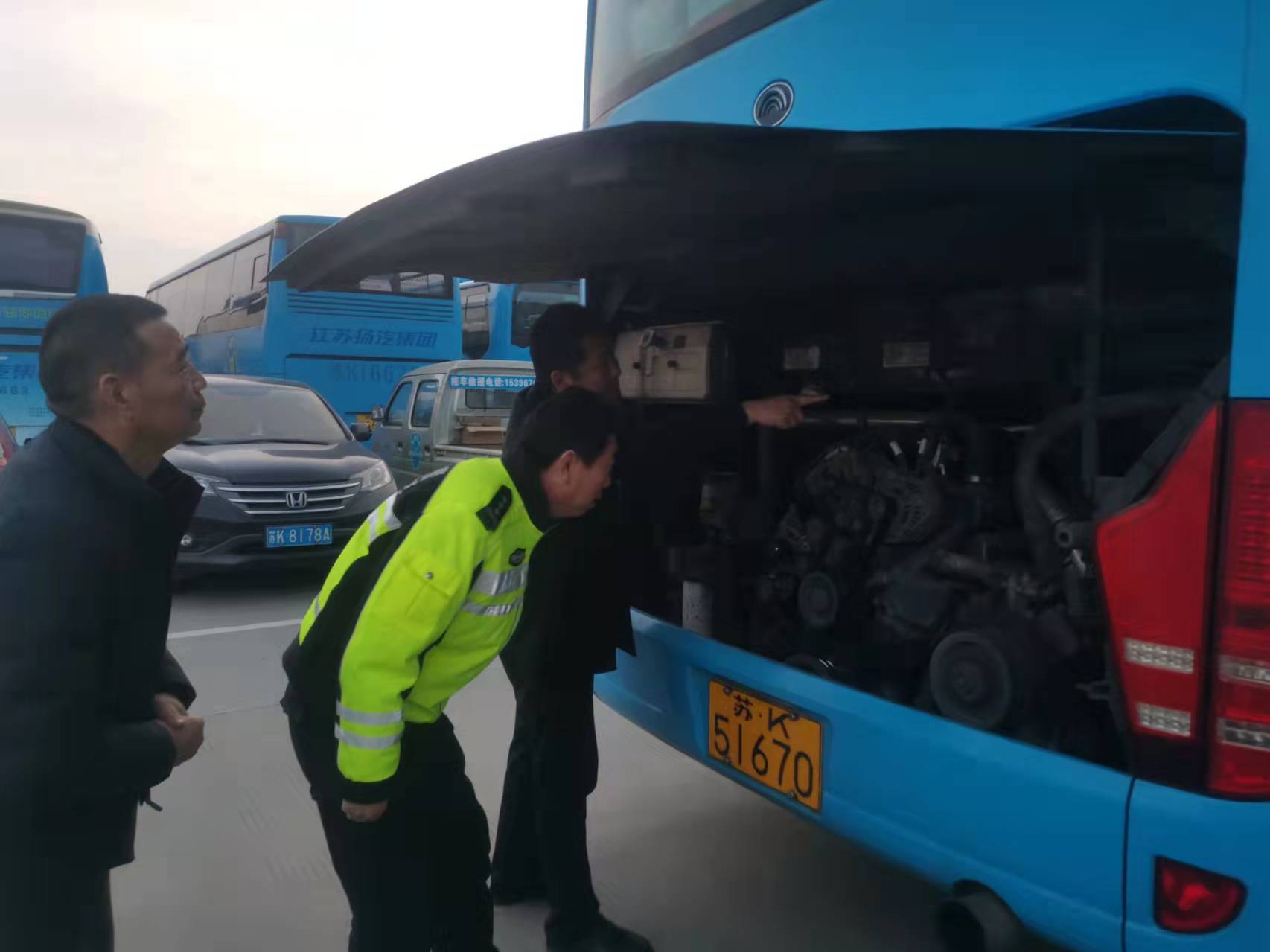 從1月13日起,集團安全機務部結合公安交警部門相關工作要求,組織開展春運車輛臨時檢驗工作,確保車輛機務技術狀態完好,全力做好2022年春運安全運輸保障工作。揚州市公安交警隊分管轄區鮑小勇、安全機務部相關負責人在現場指導春運車輛臨檢工作。