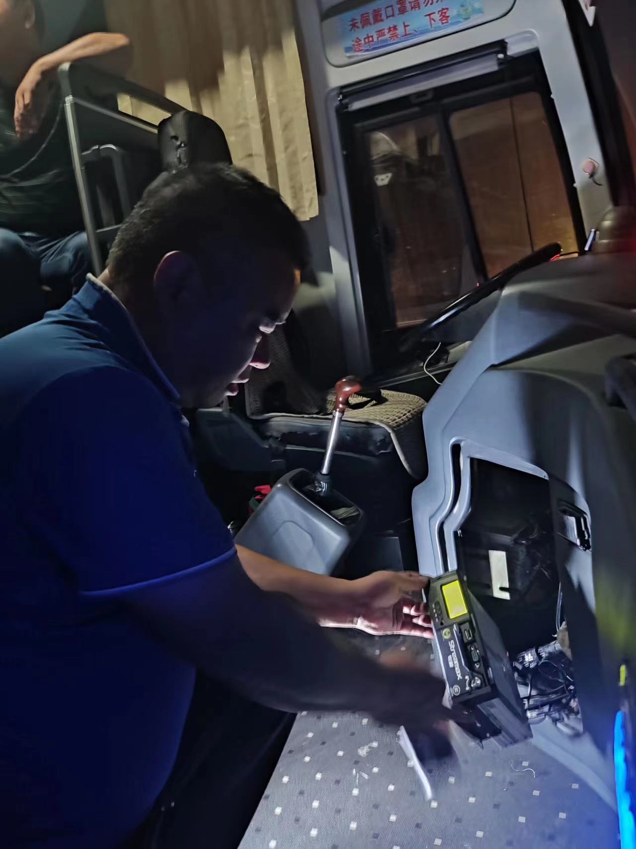 由于假期高速擁堵,車輛進站時間延誤,班車駛進車站后已到晚間,搶修人員趁著夜色立即對車輛的主動智能防控掉線原因進行全系統排查。經全面檢查后,發現主機內SIM卡損壞導致故障。為保障車輛明日的正常運作,搶修師傅立即對SIM卡進行更換,并對主動智能防控系統進行詳細檢查,順利的完成了此次搶修工作。