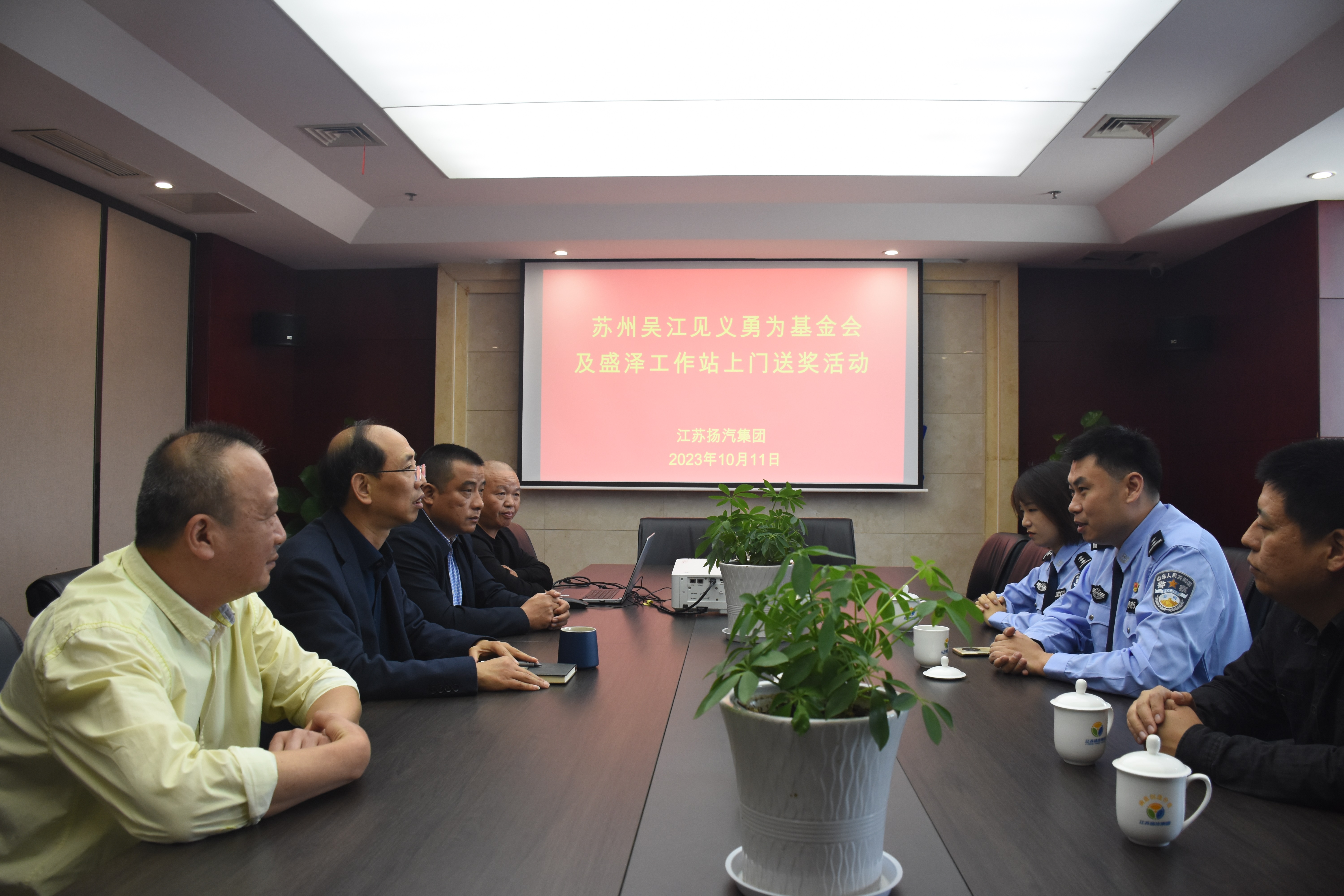 10月11日,蘇州市吳江區(qū)見義勇為基金會及盛澤工作站一行來到揚汽集團,為勇救突發(fā)心臟病乘客的大巴車司機郭安鳳上門送獎,表彰他見義勇為的感人事跡。