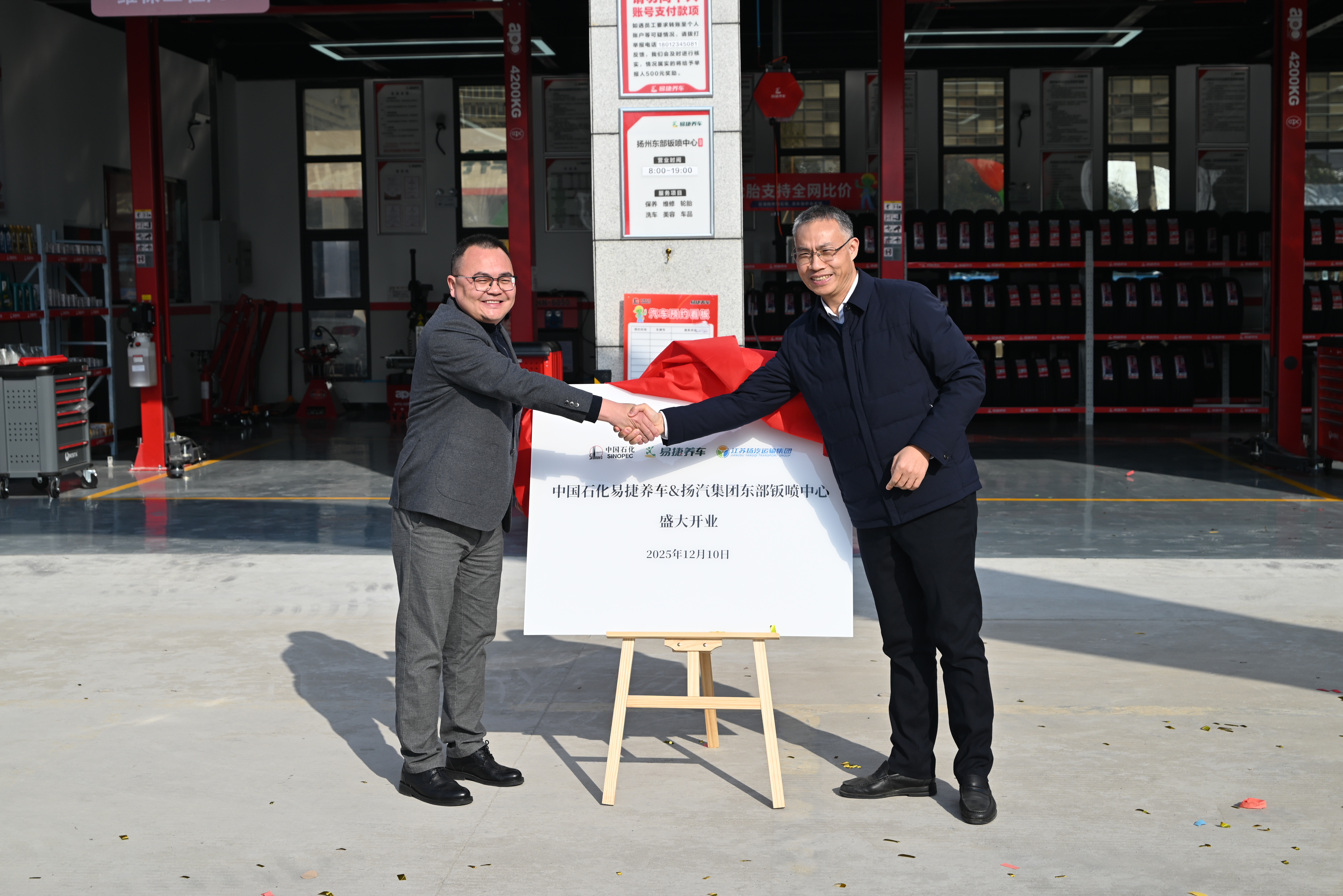 揚汽集團與中石化揚州分公司合作共建“易捷養車鈑噴中心”正式揭牌開業